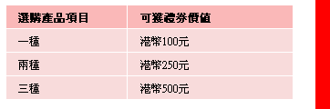 - 合資格客戶若於推廣期內透過匯豐網上理財成功選用以下任何一項指定產品項目, 可獲享價值港幣100元禮券;若能成功選用兩項指定產品項目, 則可獲享價值港幣250元禮券;若能成功選用三項指定產品項目, 則可獲享價值港幣500元禮券。