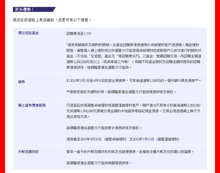 以上資料只供參考, 並備受有關條款及細則所限制, 詳情請親臨香港匯豐各分行查詢。