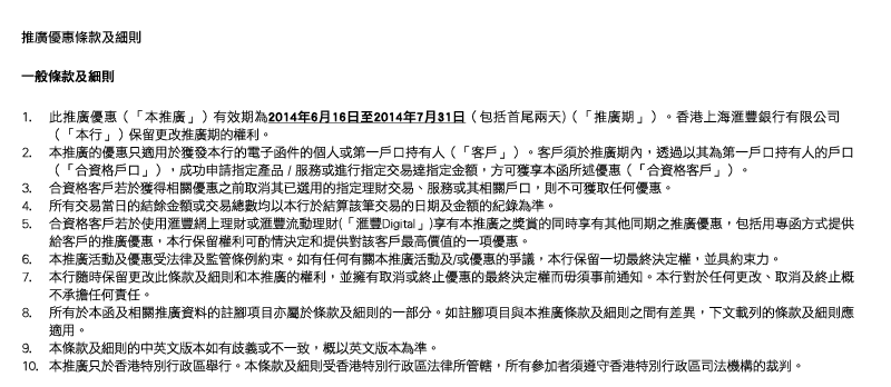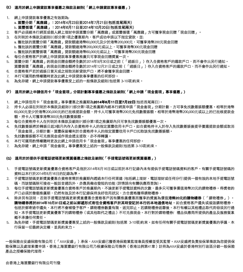 © 版權所有。香港上海匯豐銀行有限公司 2002-2014 。不得轉載。