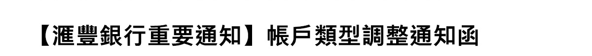 感謝您一直以來對滙豐(台灣)商業銀行的支持與信任。由於您於本行開立的運籌理財專戶已連續三個月以上每月平均餘額未達運籌理財專戶門檻新臺幣50萬元,依據總約定書之規定,自2025年11月17日起,本行將調整您的帳戶類型為整合專戶,特此通知您相關事宜。